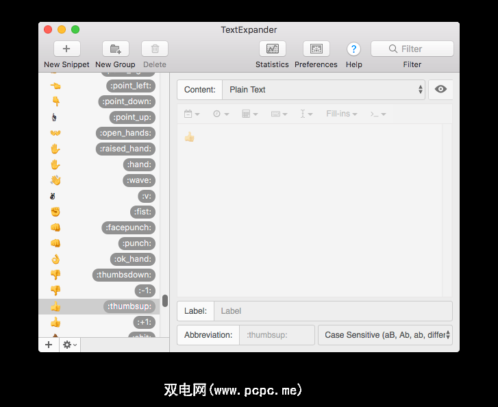 如果您是TextExpander用户,则可以通过订阅“表情符号备忘单"公共组来进行相同操作(或单独添加单个表情符号作为摘要) )。您会在侧边栏中看到一个新部分。您也可以浏览并更改表情符号的缩写。