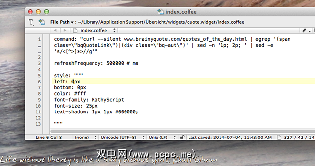 我将所有这些保存到名为“ index.coffee"的文件中,并将其放置在名为“ quote.widget"的文件夹中。