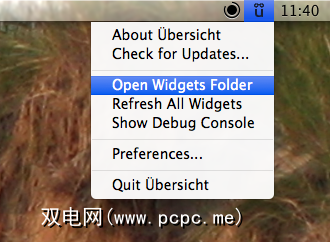 这些小部件为ZIP文件,您应该将其解压缩。然后,点击Übersicht的菜单栏图标: