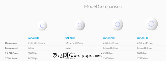 任何连接到网络的设备在进入Internet之前的跳数最少。这意味着没有瓶颈和最低的延迟。 UAP AC还具有多种设备来满足不同的需求。这些可能是范围,吞吐量和带宽等因素。四个主要设备如下: