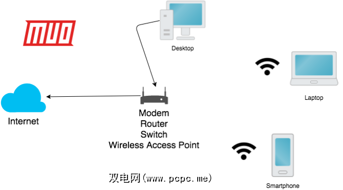 上图显示了一个典型的网络设置,其中单个设备用作调制解调器,路由器,交换机和无线接入点。将所有这些角色分配给单个设备比较便宜,并且在面积较小且设备很少的情况下可能会起作用。但是,在较大的建筑物中,Wi-Fi可能无法使用,因为可能有多个楼层。还将有更多的网络流量,而一个设备的解决方案将无法处理。