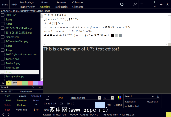 无处不在的播放器的文本编辑器是记事本的非常简单的替代品。您可以通过几种方式设置文本格式,例如更改字体,大小和颜色。您可以从界面中立即访问特殊字符映射。您还可以使用内置浏览器以HTML格式查看文本。