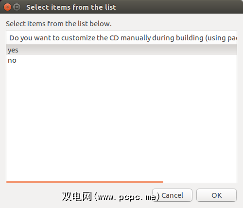 UCK将询问您是否要在构建过程中使用软件包实用程序和控制台自定义CD。选择是。