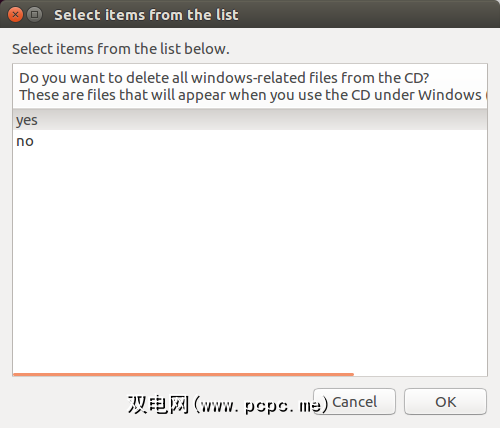 下一步,您可以选择是否要从磁盘中删除Windows相关文件。这些是在Windows上使用实时CD时运行的文件。我选择了是,因为我不会在Windows上使用我的实时CD。这是节省空间的好方法,因此,除非您完全需要,否则请将其删除。