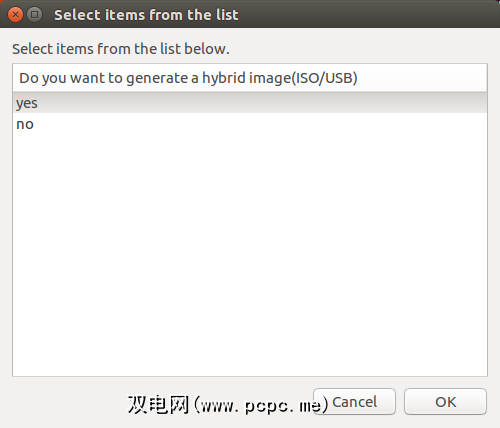 现在,您可以选择是否要生成混合图像。是的,您当然可以。这样,您可以将自定义发行版刻录到USB记忆棒上。