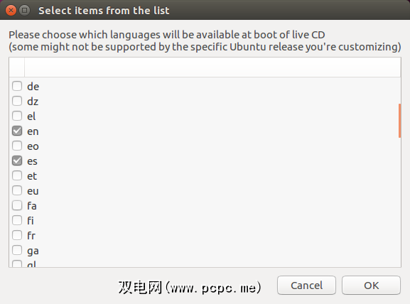准备再次选择语言。这次,我们将决定在实时CD启动时希望使用哪些语言。同样,我只是使用英语和西班牙语。点击确定。