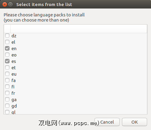 现在是时候选择您的选项了!首选是选择语言包。由于我只使用过英语,因此我选择了英语,但也选择了西班牙语。选中首选语言包后,点击确定。您可以根据需要安装任意多个。
