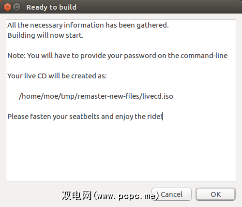 安装程序。完成后,选择继续构建。 UCK现在切换到过程开始时打开的终端。输入密码。