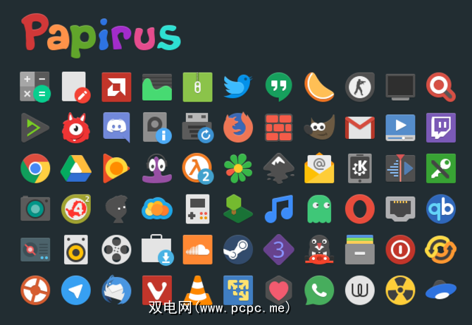 Papirus会在Paper图标集上扩展并带有更多图标。它还以其他元素为主题,例如某些系统任务栏和彩色文件夹。该软件包包含3,000多个应用程序图标,因此您的基础很可能会被覆盖。