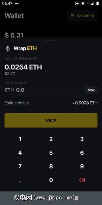 这也是您可以包装以太坊的屏幕。点击以太坊或WETH,然后根据需要选择 Wrap 或 Unwrap 。