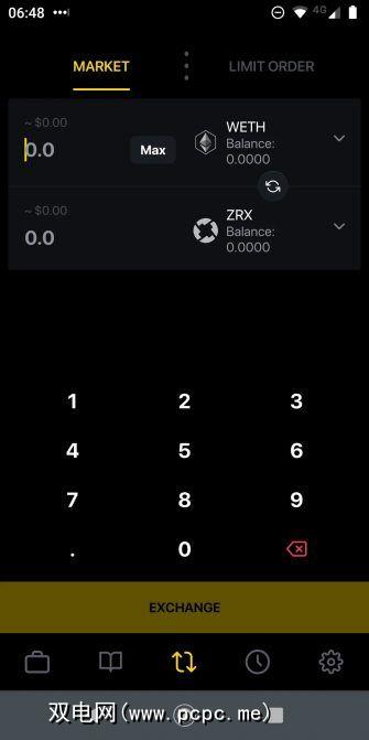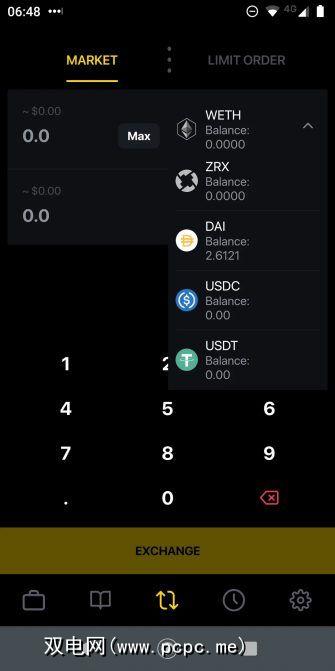 在Exchange选项卡中,您可以在不同的代币之间进行交易。