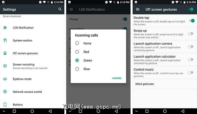 但是是“智能助手"部分,它允许进行一些自定义和调整。您可以修改LED通知灯-尽管您的颜色选项仅限于红色,绿色或蓝色。您可以启用某些手势,例如双击以唤醒,还可以记录屏幕。