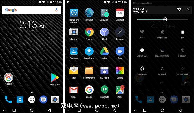 Ulefone的Android 7.0牛轧糖修改版看上去几乎几乎库存。主要的例外是过于透明的通知阴影。看起来很奇怪和俗气。除此之外,没有太大变化。