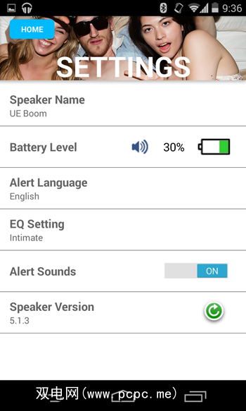 该应用程序包含有关UE Boom的大量信息,以及选件将两个UE Boom配对到同一设备。在设置中,您可以查看和听到扬声器的电量,并将此警报的语言更改为八种不同的语言之一。