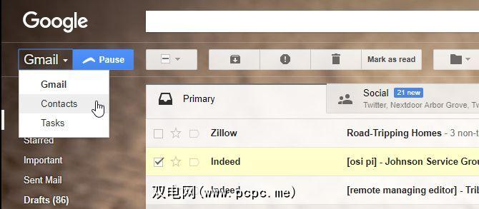 Google通讯录是功能强大的工具,可让您在许多不同的应用和设备上同步通讯录。要访问联系人,只需点击窗口左上角Gmail单词旁边的箭头即可。