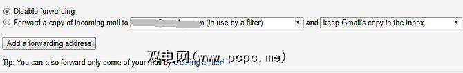 “设置"菜单中的下一个标签值得一提:转发和POP / IMAP 标签。