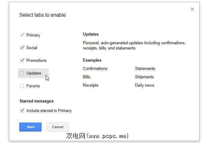 这些实际上是按“类别"组织的电子邮件,您可以根据需要自定义并添加其他标签。