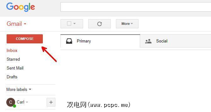 要发送第一封电子邮件,请点击红色的收件箱左上角的“撰写"框中。