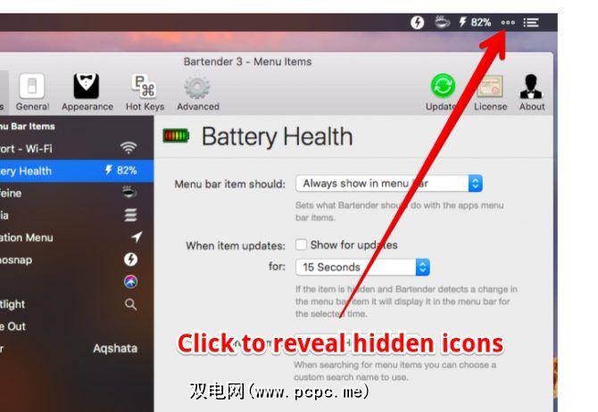 如果您喜欢此图标-隐藏菜单栏应用程序的功能,并且愿意为某些高级功能付费,请使用Bartender。您不会后悔的。该应用程序具有应用程序搜索功能和热键支持。