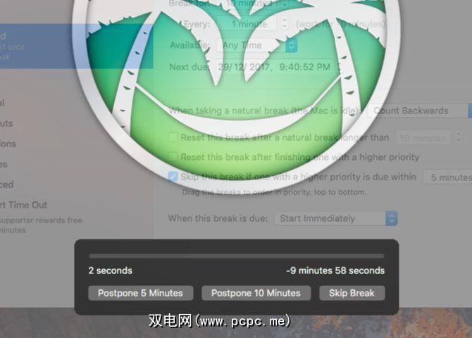 您可以从应用的菜单栏图标触发Pomodoro,短暂休息或长时间休息。如果要调整这些间隔中的任何一个或关闭自动启动功能,请通过菜单中的显示选项访问应用程序的设置部分。