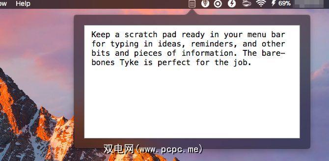 在菜单栏中准备好便笺本,以输入想法,提醒和其他内容。信息。准系统Tyke非常适合这项工作。