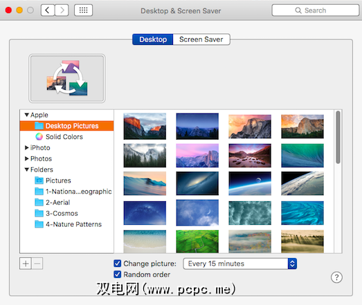 要查看这些壁纸,请转到屏幕的左上方,单击Apple徽标,然后单击< strong>“系统偏好设置">“桌面和屏幕保护程序" 。在打开的窗口中,单击顶部的桌面标签。