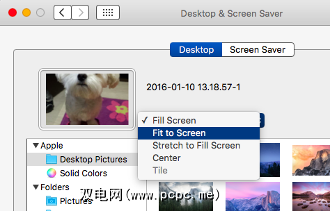 照片的位置可能错误。当我将亲爱的小狗放在桌面上时,他的头顶被割断了(一定有点st住了)。所以就是在这种情况下,您需要返回到系统偏好设置>桌面和屏幕保护程序进行修复。