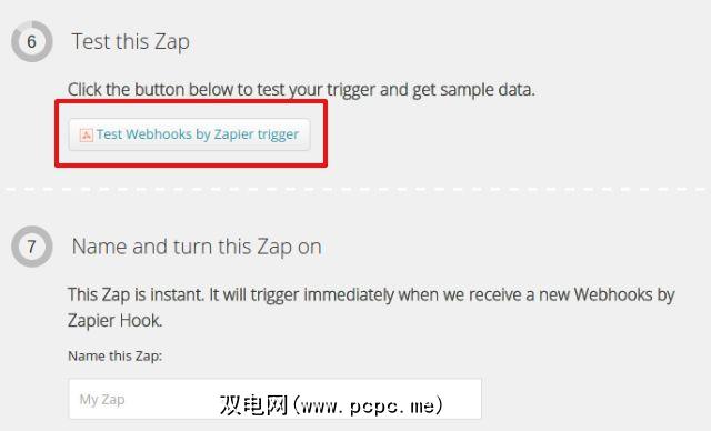 然后返回Zapier,在下一步中,您将看到一个按钮,用于“ 通过Zapier触发器测试Webhooks "。这将检查队列中是否已发送任何命令,并分析POST中的可用数据。