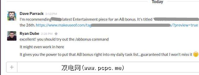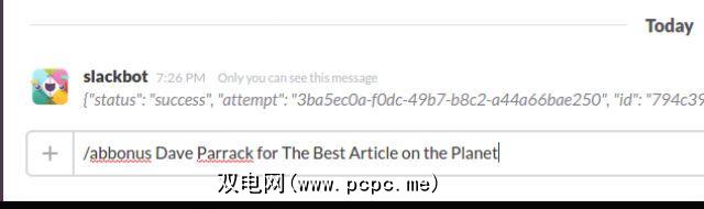 例如,在这种情况下,我将其进行设置,以便人们可以输入“ / abbonus < Article-Title>",以便将应得奖金的文章标题传递到“管理编辑"的待办事项列表中。