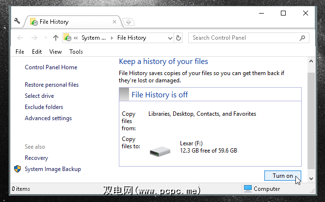文件历史记录是一种相对较新的方法,可以将文件安全地保存到单独的笔式驱动器(适用于Windows 8和10)。