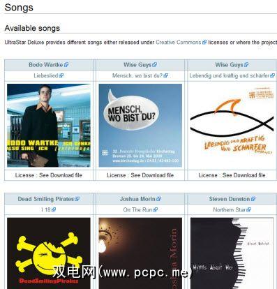 您可以查看在Ultrastar专用Wiki页面上显示了游戏歌曲的部分列表。