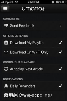 其他应用程序设置包括自动播放在收听频道,接收每日提醒并与您的Facebook朋友自动分享您的喜欢或收听内容时,阅读下一篇文章。
