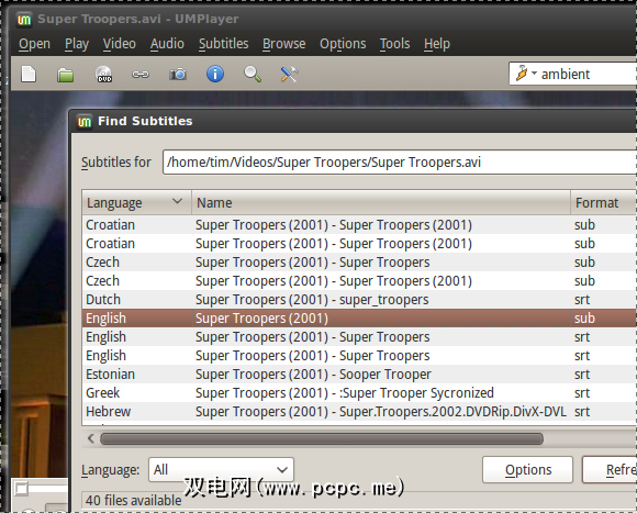 UMPlayer还可以为您获取免费的字幕。 。只需打开您选择的媒体,单击字幕,然后单击在OpenSubtitles.org上查找字幕。将打开一个新窗口,显示您恰好正在观看的电影或节目的所有可用字幕。单击下载即可下载文件,而无需再担心字幕。