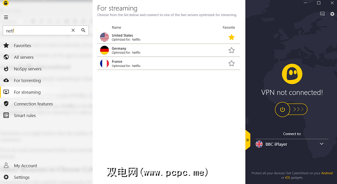 最近,我选择了CyberGhost。使用VPN可以非常轻松地访问Netflix的国际版本,英国境外的BBC实时流以及您想观看的任何其他受地理位置限制的服务。