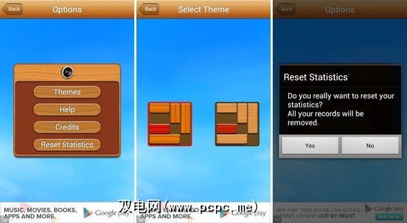 在选项方面,“取消阻止我"没有多少,但也没有。游戏而已!我什至都没有想过要自定义的内容。 “ Unblock Me"为您提供了用于块体的深色和浅色木质主题的选择,仅此而已。另一个值得注意的选择是能够重置所有统计信息。