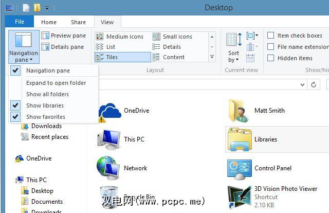您可以根据需要将库添加回文件资源管理器中,点击 View 标签,然后点击 Navigation 窗格。在打开的下拉框中,点击“ 显示库",您就可以重新营业。另外,您可以通过右键单击库并打开属性,仅使某些库可见。然后选中结果窗口底部附近的“ 在导航窗格中显示"框。