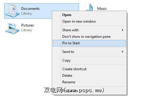 使它们更加可见的另一种方法是将它们添加到任务栏或桌面。要将它们添加到任务栏,只需右键单击库,然后单击“ Pin开始"。。要创建桌面图标,请右键单击然后单击“ 创建快捷方式"。"将生成的快捷方式放在您的桌面上。