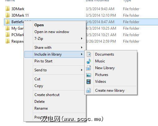 您可以通过右键简单地将选择文件夹添加到库中单击,单击“ 包含在库中",然后选择所需的任何库。将文件夹添加到库会添加其中的所有文件。不幸的是,您不能将单个文件添加到库中。