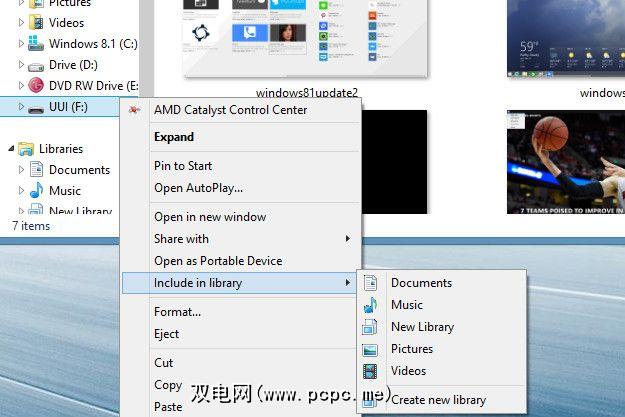 您可以添加库使用上述方法从外部来源获得。完成后,在连接或重新连接驱动器时,外部文件夹将自动出现在库中或从库中消失。而且由于该库与驱动器本身(或其上的文件夹)关联,而不是与单个文件关联,所以添加到该库文件夹的任何新文件将在您下次重新连接驱动器时自动出现。