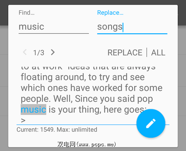 查找和替换: Inputing +还具有内置功能-in功能可查找和替换当前正在编辑的文本中的某些单词或短语。它不具备某些Windows应用程序强大的功能来查找和替换多个文件中的单词,但总比没有好!再次,它的工作原理与您期望的一样。