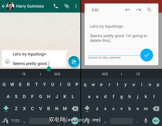 另一件事:Inputing +可以与现有的键盘应用程序一起使用。无论您使用哪种Android替代键盘,Inputing +都会获取文本并将其存储在本地,因此您可以返回到文本。