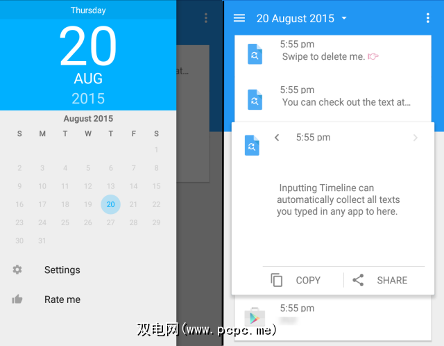 时间轴:输入+将保存您在剪贴板中键入的几乎所有内容,并按日期排列并附加一个应用程序图标,以便您知道自己的位置写了。仅此时间线就值这美元,因为仅用了2个小时,就已经为我省去了两次重大的麻烦。就像整个Android上的Lazarus。