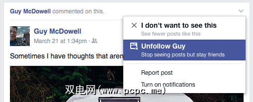 从此处可以取消关注,这意味着您“将不再看到该人的帖子,但他会继续看到您的帖子,就Guy而言,还会发布爸爸的笑话。