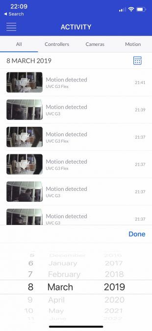 UniFi Protect应用程序包含四个部分:相机,活动,用户和设置。在摄影机上,您将大部分时间用于查看实时Feed和过去的录像。但是应用程序真正令人眼前一亮的是时间轴视图,称为“时间间隔"。