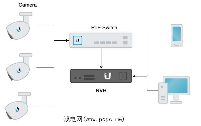 NVR与摄像机连接到同一网络并存储摄像机的视频输入。 NVR还负责显示实时摄像机的提要,并通过与其相连的计算机和移动设备回放录制的视频。
