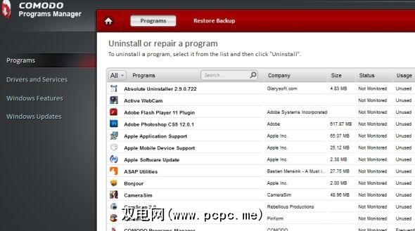 我的同事Mihir说Comodo Programs Manager(免费)是他最喜欢的卸载程序。它运行速度很快,并且比同类程序少。