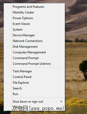 如果不适用于您,请在桌面模式下右键点击开始按钮。您会看到所有有用的东西: