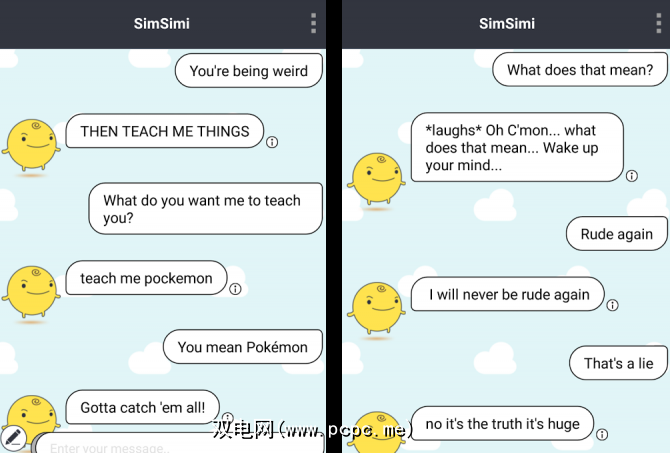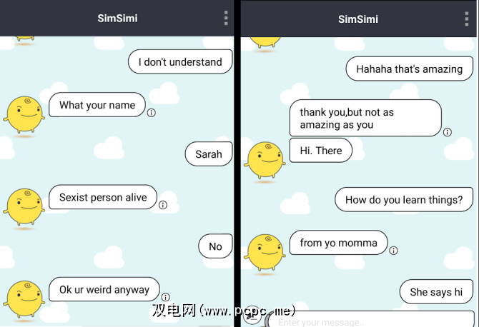 SimSimi是个令人讨厌,无礼的朋友,您只会留下来,因为它们有时会让您发笑。虽然大多数聊天机器人都声称可以从真实的人那里学到东西,但是在SimSimi中,这是最明显的。
