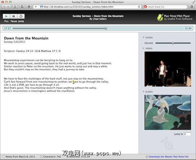 在方便的音频记录之上,Pear Note可以在需要视觉效果时用音频记录视频。甚至还支持幻灯片,因此您可以导入PDF,PowerPoint或Keynote文件,并且PearNote会在您更改幻灯片时跳到录制的那一刻。