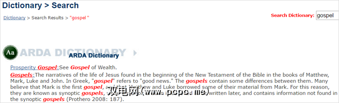该词典提供了一个定义,其中包含用于进一步研究的链接,用法示例,并在结果中突出显示该单词,为您提供一种更快找到所需内容的方法。并且,该网站涵盖了各种宗教的用语。